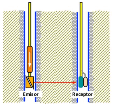 Este método precisa de dos perforaciones como mínimo para su ejecución. Este método se lleva a cabo generando pulsos sísmicos de ondas P y S en la perforación de emisión y registrando sus tiempos de viaje con geófonos de tres componentes en la segunda perforación. Es posible conocer la velocidad del medio a través del cual se propagan las ondas conociendo la distancia que separa a los sondeos. Por otra parte es posible conocer la densidad de los materiales que atravesaron los sondeos.