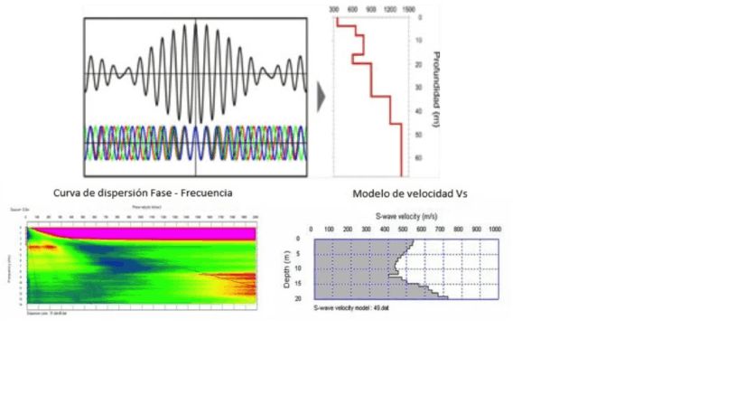 Este método geofísico consiste en determinar la distribución de ondas de corte hasta varios metros de profundidad. Para esto, se realiza un análisis espectral de ondas superficiales, tipo Rayleigh, la cual se halla incluida en el ruido sísmico ambiental y son generadas por una fuente impulsiva. Por lo tanto, este método registra el ruido ambiental y se obtiene el perfil de distribución de Vs en el terreno que se encuentra directamente relacionado con la rigidez, el grado de consolidación y la consistencia de los suelos.